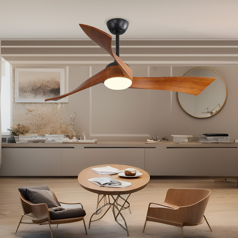 Ventilateur de plafond décoratif télécommandé moderne de 52 pouces Lame en bois massif 3 pièces vintage de haute qualité avec lumière LED Styles simples